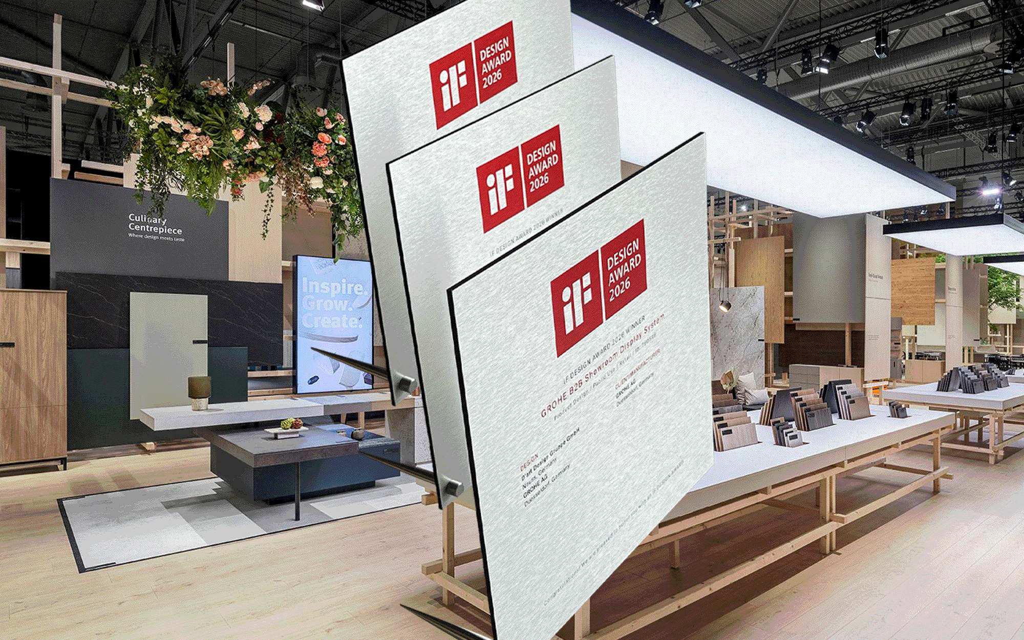 Auf der ISH in Frankfurt präsentiert sich GROHE mit einem eindrucksvollen Markenauftritt, der Design zum Erlebnis macht. Der Markenclaim "Pure Freude an Wasser" wird in ästhetischer Perfektion inszeni...